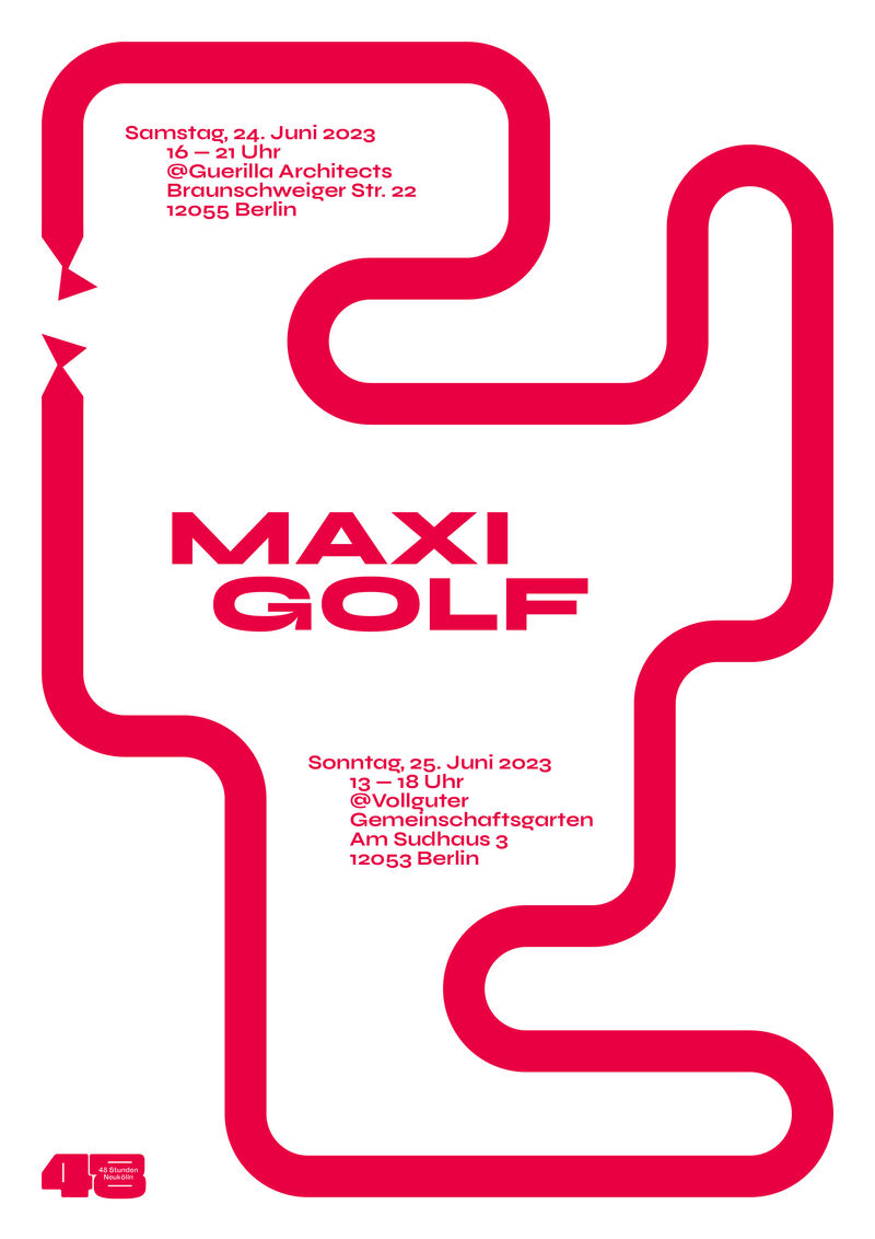 Webseite besuchenEine schlauchartige Bande macht aus Straßen, Plätzen und Stadtobjekten eine urbane Minigolfbahn. »Maxi-Golf« fordert die Multicodierung von Stadtraum und erklärt die alltägliche Umgebung zum Spielfeld. Die Installation ist als Kollaboration zwischen Maire Cordts, Lisa van Heyden und Leon Klaßen im Rahmen des Kunstfestivals 48 Stunden Neukölln 2023 entstanden und besteht aus einem 40 Meter langen Schlauch, einem beleuchteten Ziel, Schlägern und tragbaren Hindernis-Schuhen.